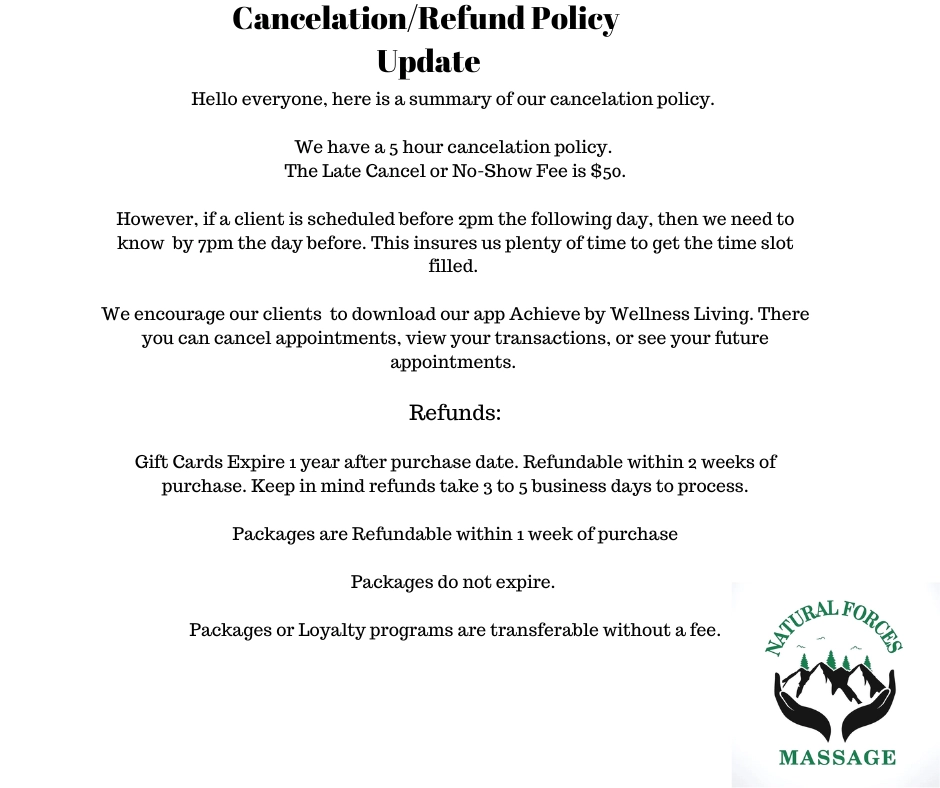 NOTE: Memberships charged within 30 days can be refunded. They can be paused or cancelled and client will not lose prepaids. They can also be shared.
